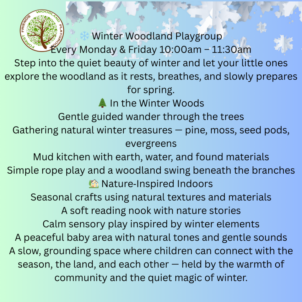 Playgroup is recommended for under 7s with regular weekly classes, lots of outdoor fun, nature play and activities all within a woodland environment.